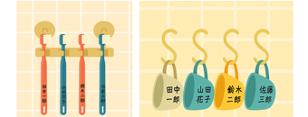歯ブラシやコップの衛生管理の基本として、①個人専用とすること、②他の人の用具と接触しないよう保管することがあげられます。