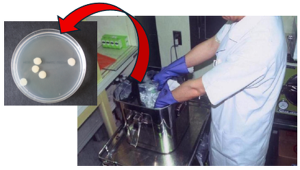 長期間にわたってアルコール性擦式手指消毒薬を使用しても、微生物が増殖してくることはありません。しかし、セレウス菌 ( Bacillus cereus ) などの細菌芽胞*が蓄積してくることがあります。たとえば、輸液バッグの浸漬消毒の目的で、消毒用エタノールを開放容器で1ヵ月にわたって使用していた不適切例では、1mLあたり20個 ( colony forming units ) の芽胞が検出されました。芽胞がチリやホコリなどとともに容器中へ混入したと推定されます。また、アルコール性擦式手指消毒薬の代替品として用いられていた飲用の高濃度エタノール製品 ( 63~78 vol % ) を調べたところ、9品中7品目 ( 77.8% ) が100mLあたり5~44個の芽胞を含有していました (「医薬品」の消毒用エタノールでは調べた3メーカーいずれも0個 / 100mL ) 。本例では原料や製造時などに芽胞が混入したと推定されます1) 。
